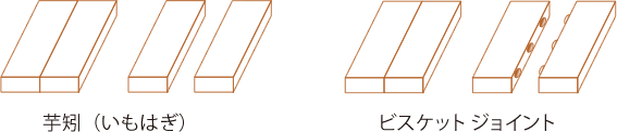 板矧ぎとは、板と板を継ぎ合わせて幅広の板材にする工法です。